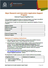 Requests to consider other External Programs not listed above must be made by completing and submitting an MRIAS External Program Eligibility Form to DOH.OMRI@health.wa.gov.au at least 2 weeks prior to the closing date.