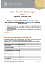 It is acknowledged, however, that clinicians regularly move employment from one HSP/PPPP to another within WA. The approval for part-time candidates to continue clinical duties and maintain the existing HDR project must be negotiated by the candidate as part of that move. The part-time appointment contract and payment provisions by the HSP/PPPP would transition to the new HSP/PPPP (for the clinical duties).