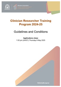 The Clinician Researcher Training Program was available to pre-consultant medical, dental, allied health, nursing and midwifery professionals employed by an eligible WA public health service provider (HSP), public-private partnership (PPP) provider or private hospital, who have secured a place on a PhD course at a WA university.