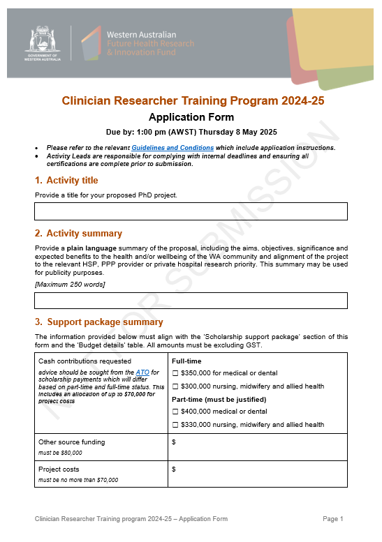 Queries related to the Guidelines and Conditions can be directed to DOH.OMRI@health.wa.gov.au with the subject line beginning with ‘Query – CRT2025’.