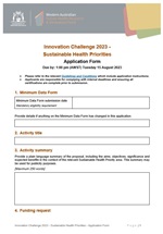 The Innovation Challenge 2023 - Sustainable Health Priorities provided the opportunity for Western Australian innovators to propose innovative solutions in the six Sustainable Health Review (SHR) priority recommendations and two additional SHR areas (Sustainable Health Priority areas).