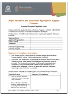 The Application Form (not for submission), the Guidelines and Conditions and the External Program Eligibility Form for this program are available below:
