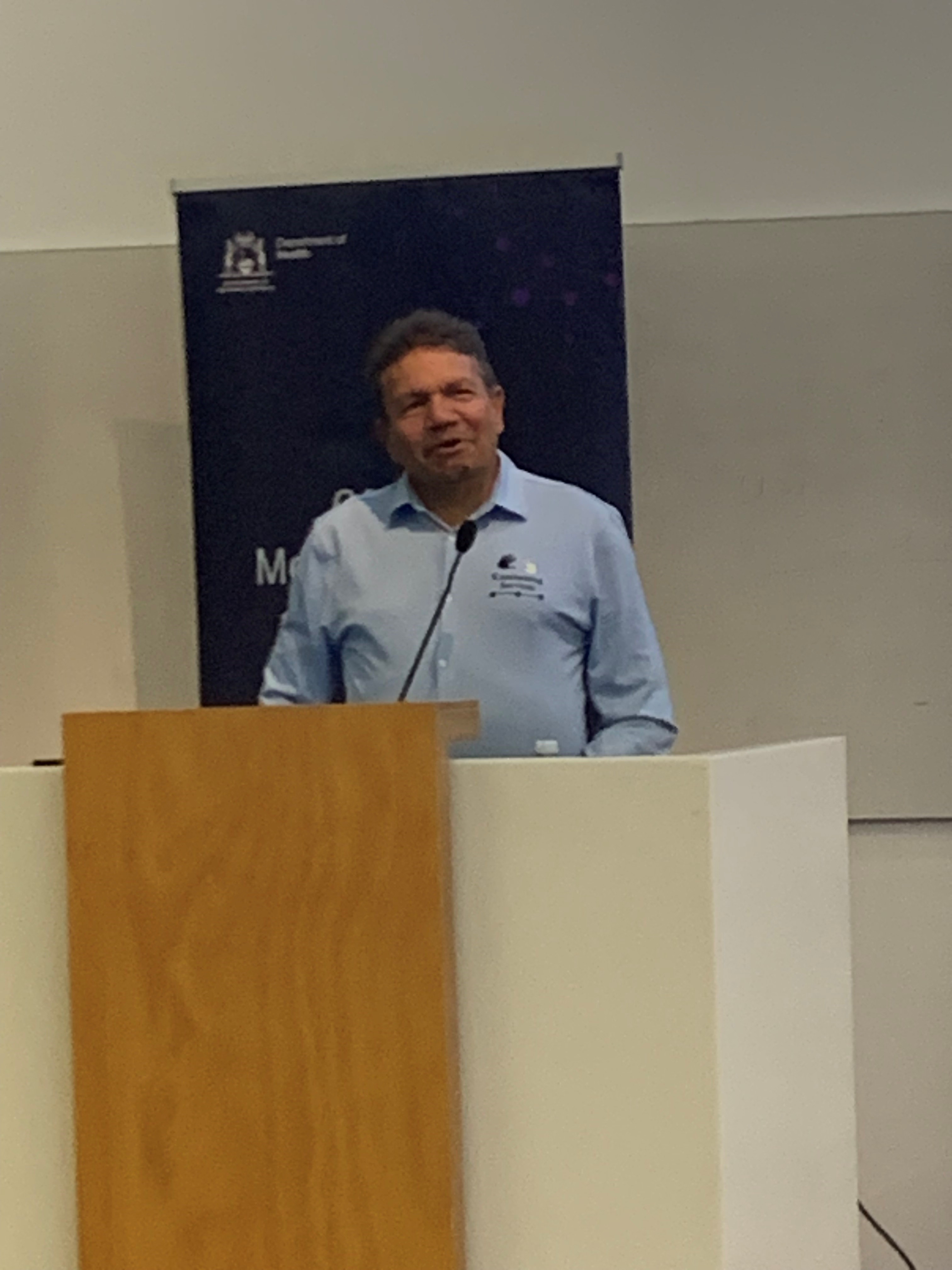 Dr Kristen Nowak, Director of the Office of Population Health Genomics at the Department of Health WA, brought her wealth of experience and knowledge in the area of genomics and precision health and graced attendees as Master of Ceremonies for the day. Mr Danny Ford a Noongar man with connections to Whadjak, Ballardong, Wilman and Yuat clans provided a Welcome to Country. Danny specialises in reconciliation and cultural awareness and has established a reputation as a leading voice in educating non-Aboriginal people in understanding Australian history, Aboriginal culture and ways of working for a better tomorrow.